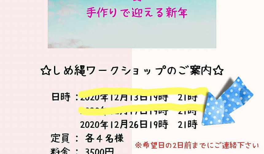 12月26日(土)はアトリエmamoryさん( @atelier_mamory )による「しめ縄ワークショップ」✨